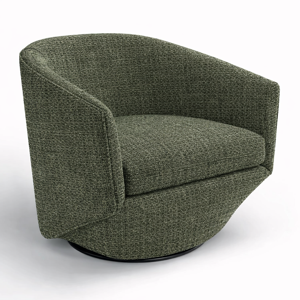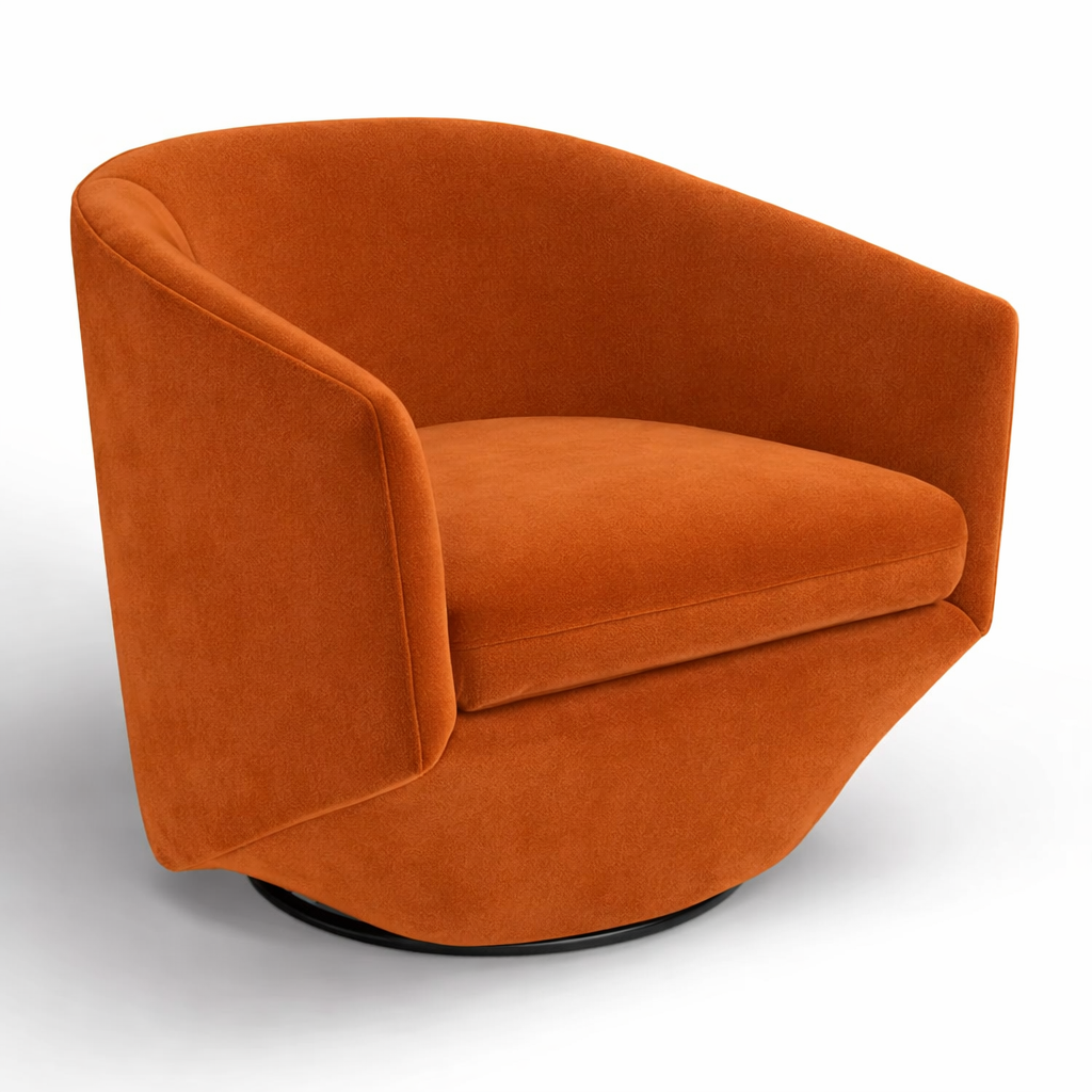 The Lobby Lounger is a sculptural swivel chair designed to make a statement while delivering everyday comfort. Its softly curved silhouette wraps the body in a supportive, lounge-ready form, making it ideal for lobbies, living rooms, reading corners, and stylish commercial spaces.