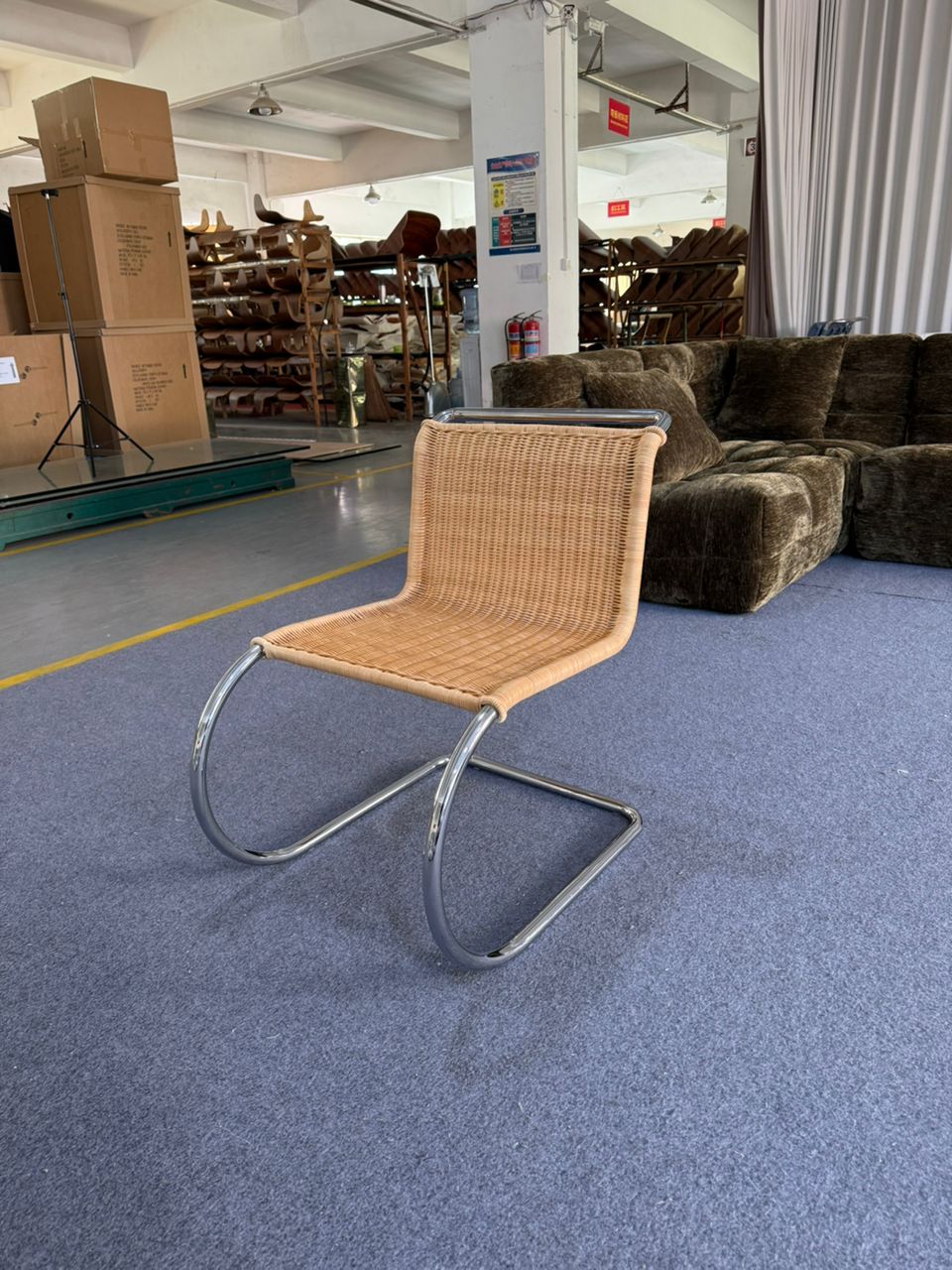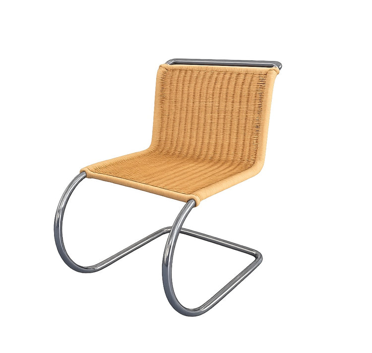 A timeless expression of modernist design, the Roche Chair in Rattan draws inspiration from the groundbreaking cantilevered seating introduced during the Bauhaus era. With its fluid tubular steel frame and suspended seat, the chair appears to float—offering both visual lightness and surprising comfort.