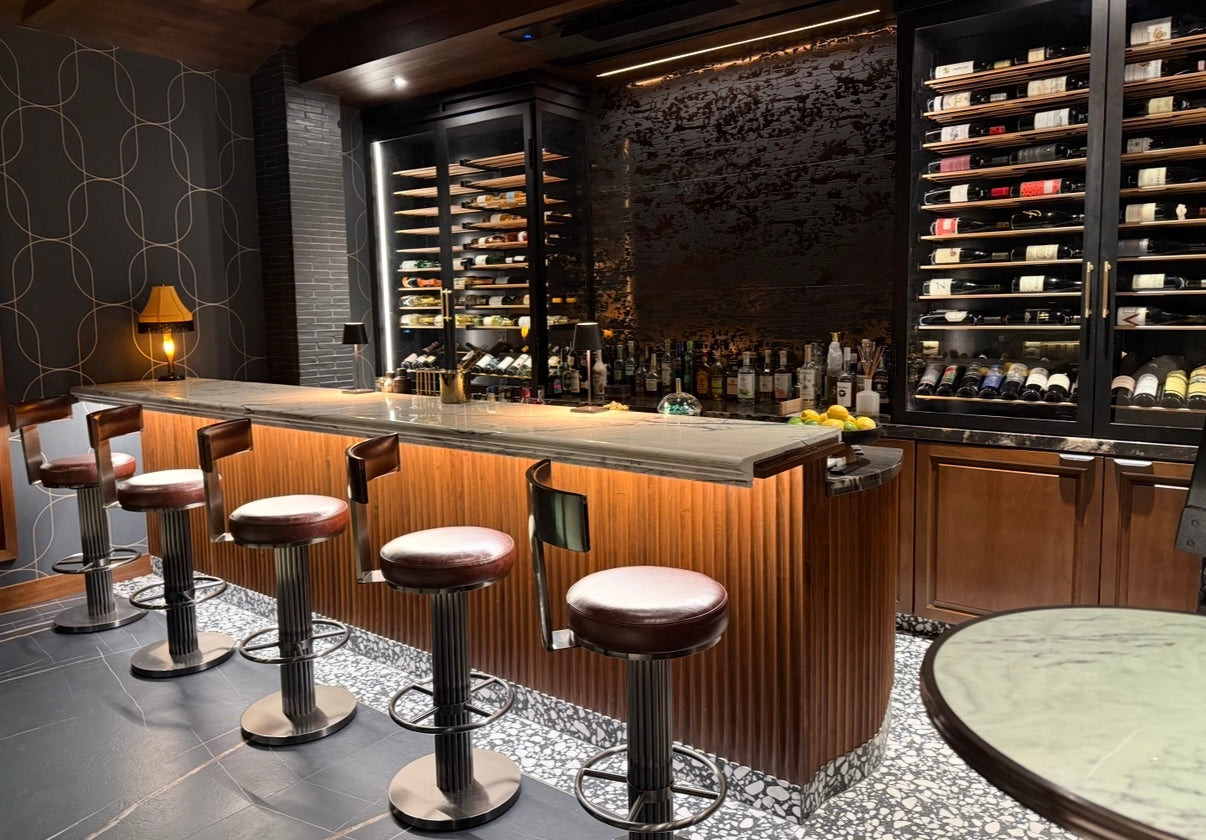 Gatsby stools in dark titanium and black leather