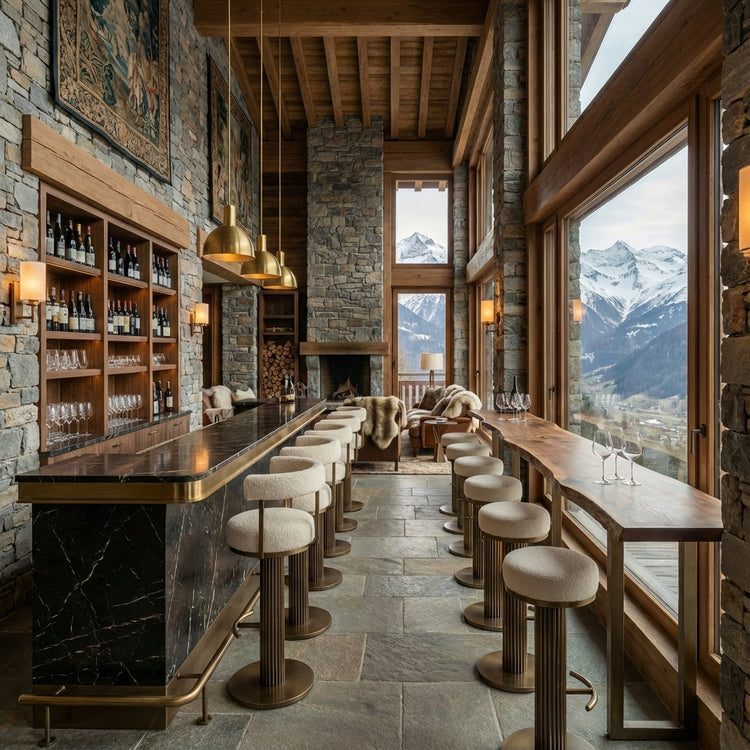 The perfect mixture of elements. Brushed Bronze stainless steel with plush comfortable fabric seating. Available in Bar stool with backrest and regular bar stool.