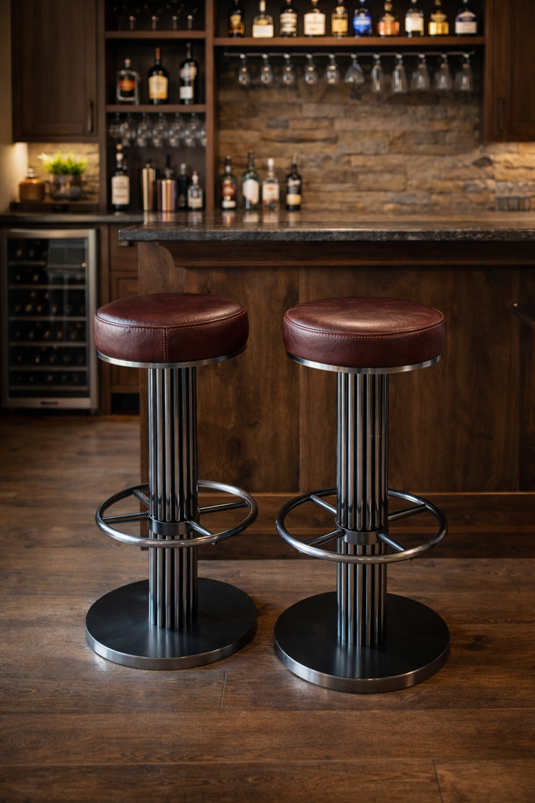 Elegant and modern Bar stools. Perfect for commercial and residential settings. Solid stainless metal and elegantly designed ornate shapes to create a stunning showcase for your home or commercial bar. counter or bar height. Chair height is fixed seat, Counter and bar height are swivel seat.