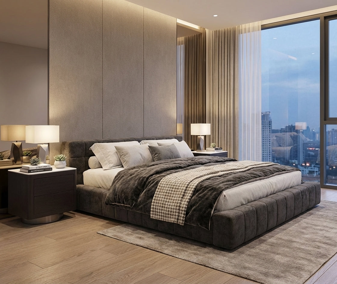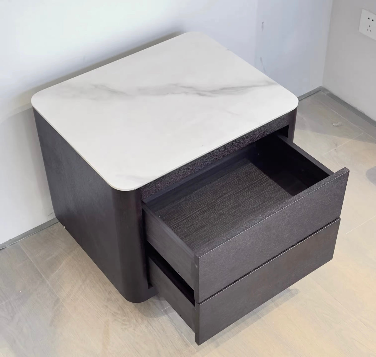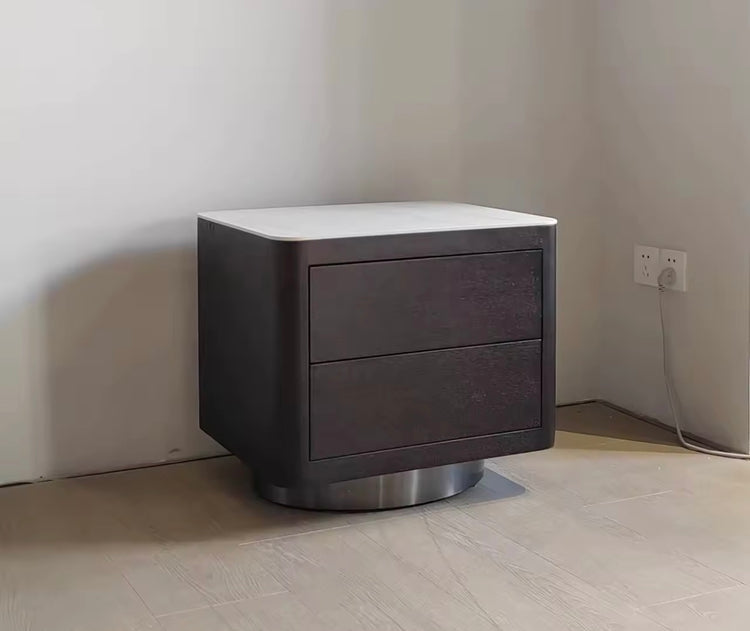 The Monaco nightstand set pairs contemporary design with enduring functionality across two matching pieces. Featuring Steele base construction complemented by walnut-finished wood trim and stone surfaces, these units present a modern aesthetic without compromising durability. Soft-close hinges deliver smooth, silent operation, while flannel felt drawer linings safeguard your belongings against damage and maintain organized storage. Measuring 18.5" H × 20" W × 15" D per unit, this set transforms your bedroom with understated refinement and thoughtful engineering. Allow 8-10 weeks for delivery of these meticulously crafted pieces.