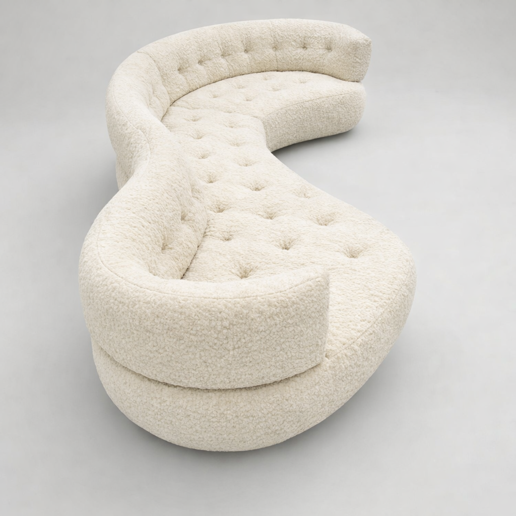 More than just a place to sit, this sofa anchors a room—sparking conversation, encouraging connection, and setting the tone for relaxed, intentional living. The continuous curve softens the space while offering supportive seating ideal for long conversations, quiet moments, and leisurely afternoons.