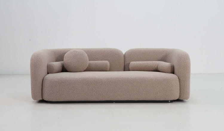 Curved Kay kay Sofa design inspired by Mid Century style, featuring soft upholstery and elegant silhouette.