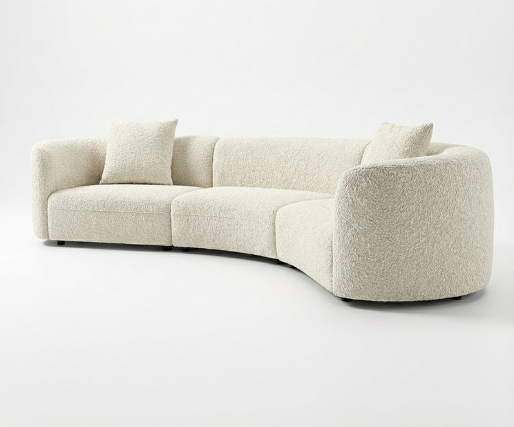 The flowing curved silhouette creates an inviting focal point while encouraging intimate gatherings and social interaction while hugging you in with eh full wrap around arm rest corners for additional comfort.