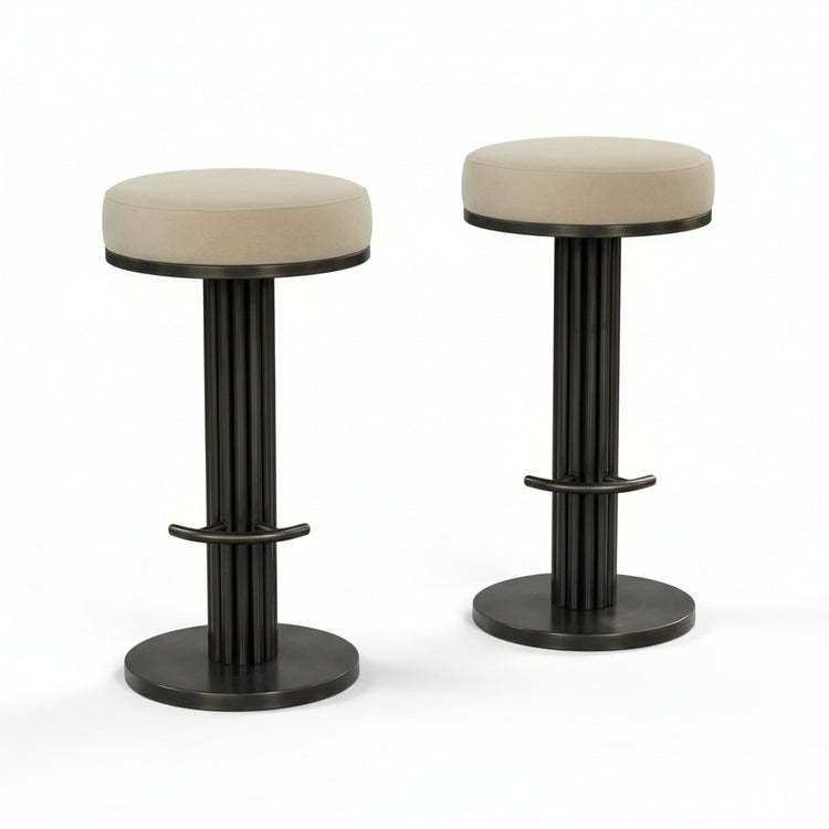 The perfect mixture of elements. Brushed Bronze stainless steel with plush comfortable fabric seating. Available in Bar stool with backrest and regular bar stool.